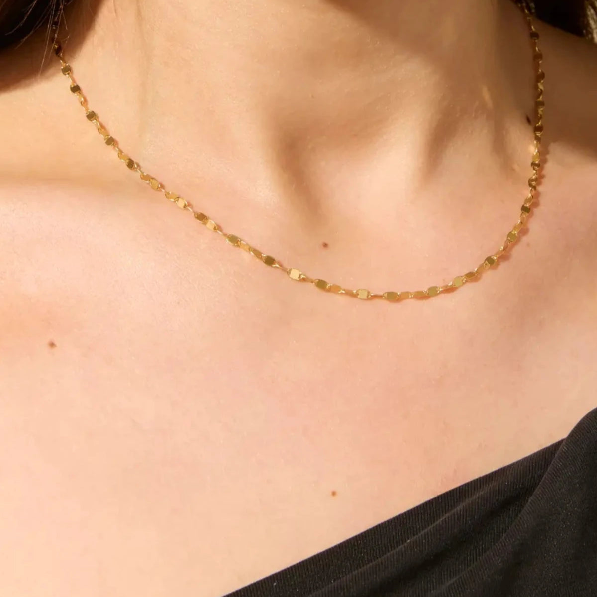 Instantly upgrade any outfit with a soft, light-catching glow at your neckline.