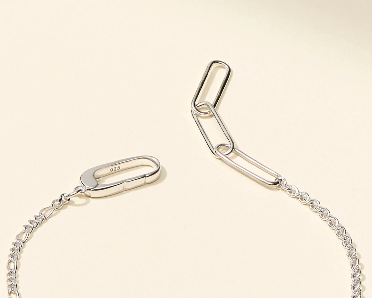 Two classic chains, one timeless piece – the Mixed Media Bracelet pairs a rounded figaro with a dainty cable chain for effortless versatility.